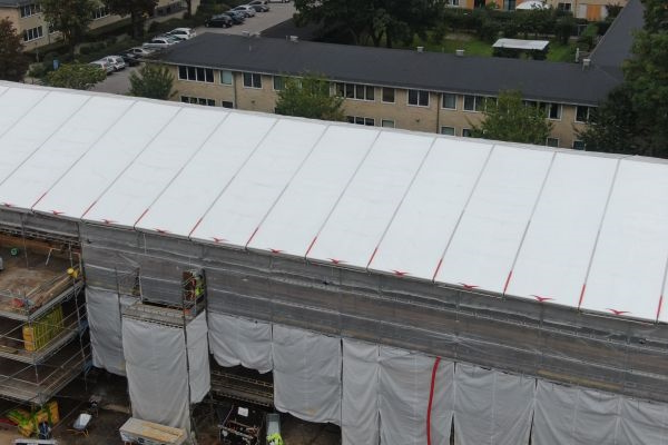 Vi opbygger stilladser til vedligehold, inspektion, montage og byggearbejde – både ude og inde. Vi tilbyder åbne stilladser samt overdækkede konstruktioner med fleksible tagløsninger, der beskytter mod vejrlig og begrænser udefrakommende påvirkninger. Overdækning kan være en fordel ved længerevarende arbejder, hvor udstyr, konstruktioner eller arbejdsmiljø skal skærmes effektivt.