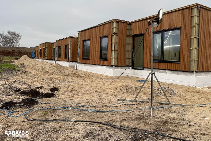 Til rækkehusbyggeri kan skruefundamenter kombineres med løsninger som bundkassetter, FUNDERA, randfundament med alm. terrændæk og HEB-bjælker - hvis der bygges med moduler eller præfab. Det giver høj præcision i både højde og placering og gør det muligt at etablere byggeri op til to etager. Fundamenterne er brandgodkendte (R60) og lever op til de gældende standarder for byggeri.