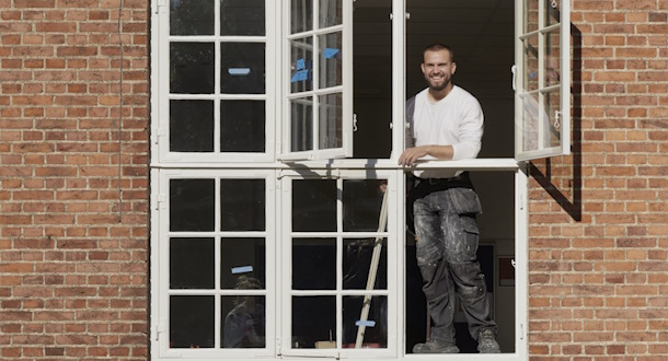 Håndværksafdelingen har erfaring med restaurering af bevaringsværdige vinduer og kan bringe vinduerne hjem på værkstedet for reparation af kit og maling med linolie.