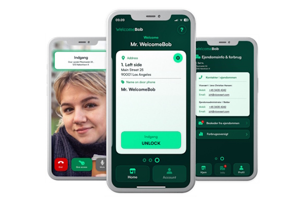 Kernen i intercom-løsningen: en digital dørtelefon, der forbinder direkte til beboernes smartphones og gør adgang enkel, sikker og fleksibel. Når der ringes på døren, modtager beboerne video- og lydkald direkte i appen – uanset hvor de er. Navne kan tilpasses, og flere medarbejdere eller beboere kan tilknyttes samme knap.